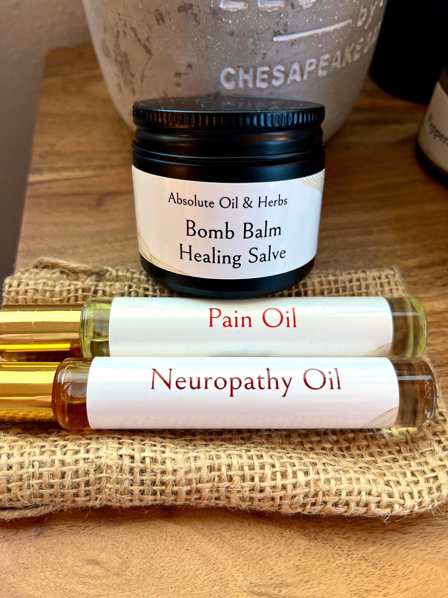 These are the Healing Oils and their properties that can help with sinus issues, anxiety, pain management, sleepless nights, hormonal changes, headaches, and neuropathy.